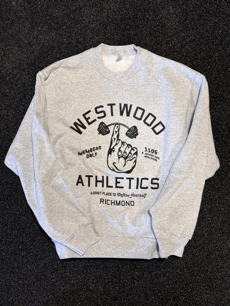 printed on Los Angeles Apparel heavyweight 14 oz crewneck sweatshirt.